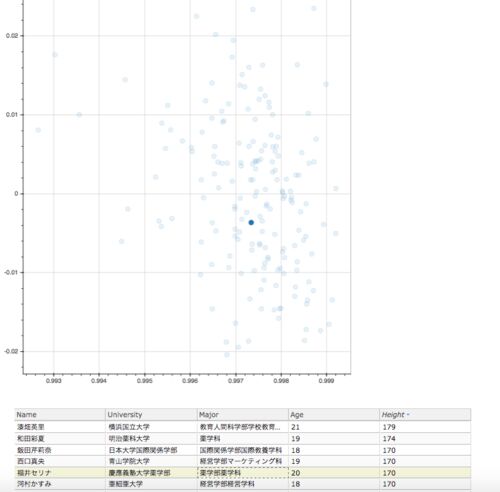きょうはこんなこと書くよ ミスコン出場者の相関関係がわかるアプリつくったよ ついでだから、Mr用にも作ってやったよ。 みんな投票してね♡ テクニカルにはこんな内容だよ 文書データを次元圧縮して、相関図にした話 python/bokehを使って、簡単にインタラク…